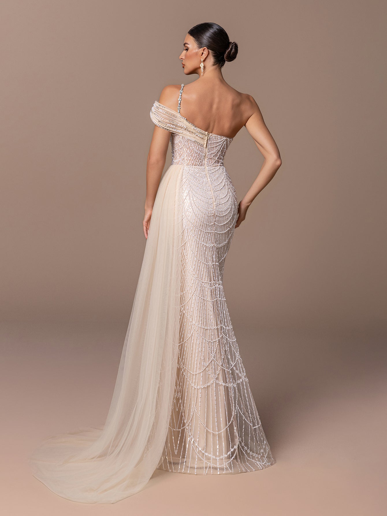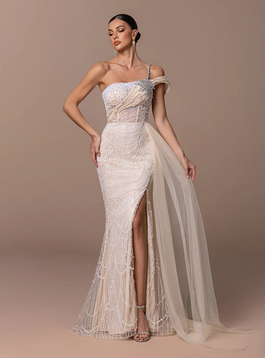 Flower Sequin One Drop Shoulder Dress