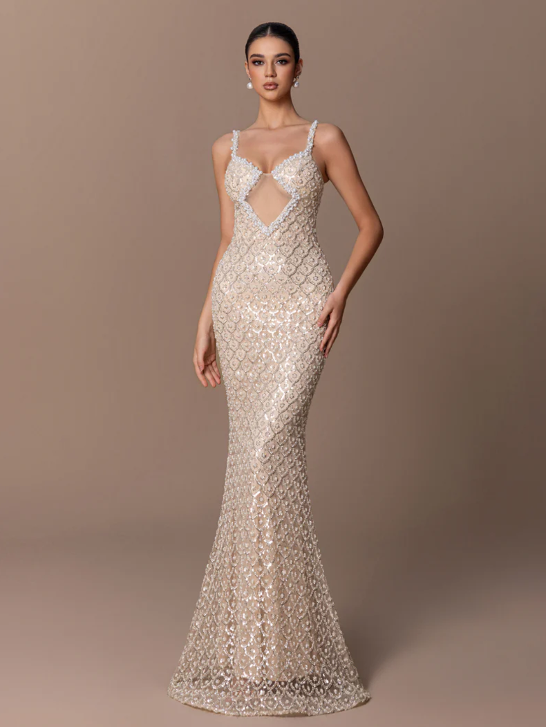 High Neck Pearl Sequin Dress