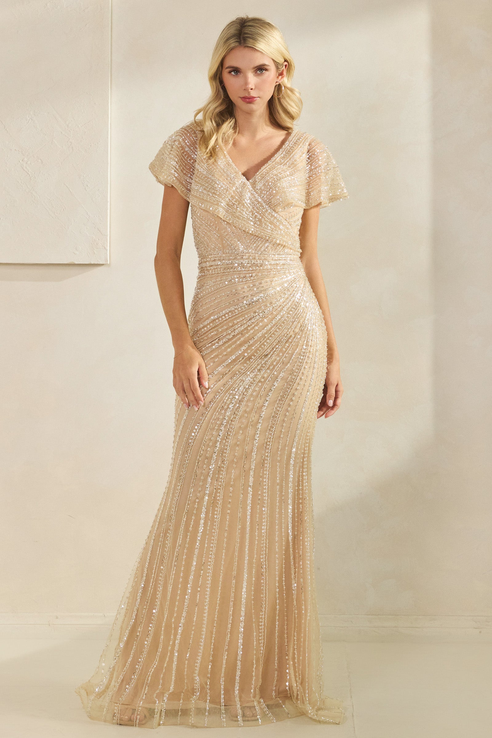 Long Sleeved Illusion Sequin Dress