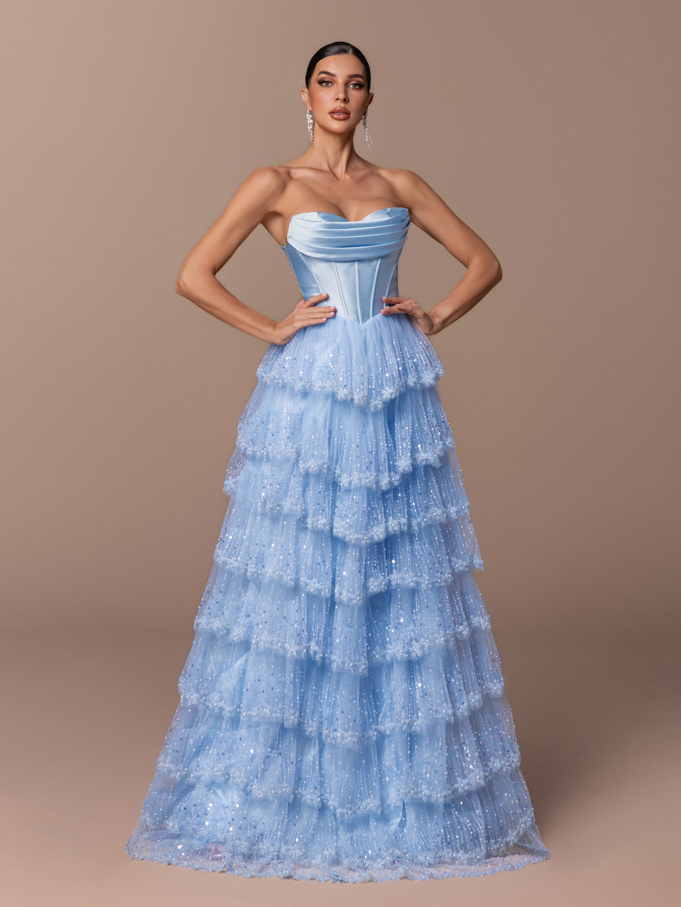 Ribbon Spaghetti Sweetheart Sequin Dress